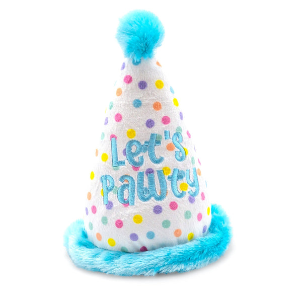 Top off your pup's birthday celebration with the ThoozyPet Birthday Hat Plush Dog Toy! This charming 7” toy brings the party to your furry friend with its festive design. Perfect for small to medium breeds, this plush party hat is more than just a cute accessory - it's a fun-filled toy that will keep your dog entertained long after the birthday candles are blown out. The built-in squeaker provides an exciting sound that will have your pup coming back for more fun. Durably constructed to withstand enthusiastic play yet soft enough for cuddles this birthday hat toy is versatile enough for any play style. Whether it's a game of birthday fetch, an iconic photo shoot or just a cozy companion for opening presents, this toy is sure to make your dog feel extra special on their big day. Made from pet-safe materials you can relax and enjoy the celebration knowing your furry friend is playing safely. Let the party begin!
