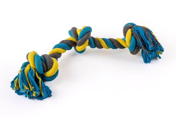 It may seem like your dog sees the world through rose colored glasses. But in reality, those glasses are more like yellow and blue. Dogs see mostly gray, but they can pickup certain colors just like we do. Our blue and yellow highlights on these rope tugs will help your dog distinguish their special toy from all the others. Just one of the many reasons they can grow so attachment to them. And why you will grow so attached to us.