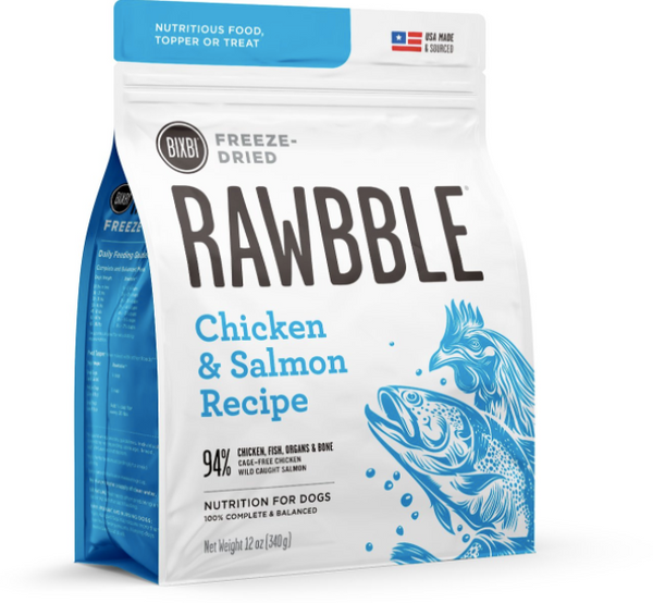 Delicious and nutritious, BIXBI Freeze Dried Rawbble combines the whole-animal nutrients of a raw food with the convenience of kibble. Freeze Dried Rawbble is 95% meat, bones and organs to provide your pup with a healthy source of protein and to help give them healthy teeth and gums too. When foods are cooked, they lose a lot of their nutritional content. But Rawbble uses freeze-dried technology to lock more naturally sourced essential nutrients into every bite. There are three ways you can incorporate Freeze Dried Rawbble into your dog's diet: as a complete and balanced food, as a kibble topper, or as a high-reward treat.