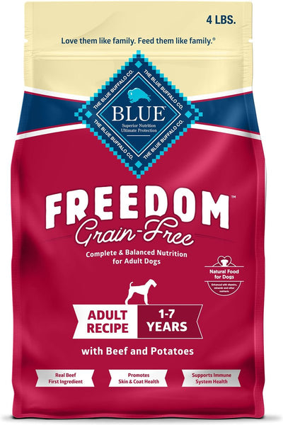 Blue Buffalo Freedom Grain-Free Dry Dog Food is made with beef as the first ingredient, plus antioxidant-rich fruits and vegetables for truly balanced nutrition. This wellness dog food is free from grains that contain gluten, which some pet parents choose to avoid. It’s also formulated with an optimal balance of omega-3 and omega-6 fatty acids to promote a shiny coat and healthy skin. And like all Blue Buffalo dog food recipes, this dog food contains no chicken (or poultry) by-product meals. It’s also free from corn, wheat, and soy.