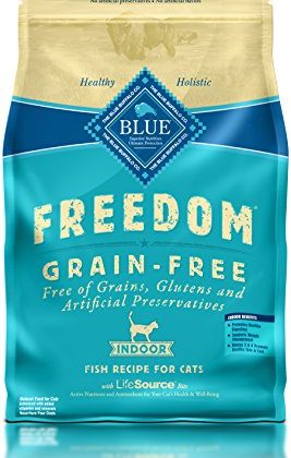 Some cats just don't do well with grain-based foods. That's why we created BLUE Freedom dry food for indoor cats. BLUE Freedom contains no grains, so it has no glutens. Glutens can trigger allergic reactions in some cats. Fish is the first ingredient. Whole carrots, sweet potatoes and peas, blueberries and cranberries. NO chicken or poultry by-product meals, NO corn, wheat or soy and nothing artificial.
