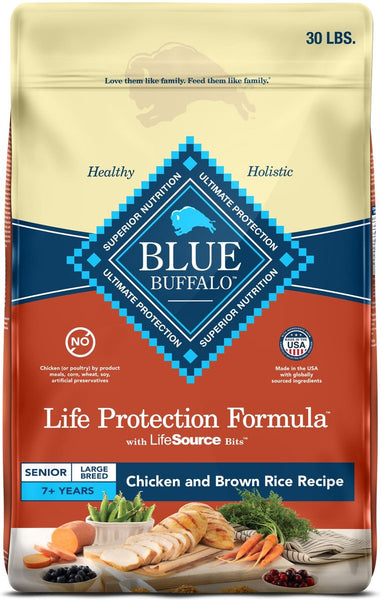 - FOR LARGE BREED SENIOR DOGS: BLUE Life Protection Formula® Large Breed Senior Dog Food contains glucosamine and chondroitin to help support joint health and overall mobility with the essential proteins and carbohydrates to help maintain energy requirements for a healthy lifestyle..