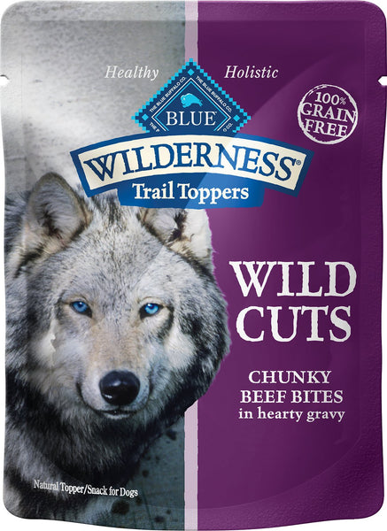 These delicious meal toppers make any meal a special treat. Made with delicious bites of real beef steeped in irresistible gravy, BLUE Wilderness Wild Cuts Trail Toppers are made to satisfy the spirit of the wolf that lives on in your dog.