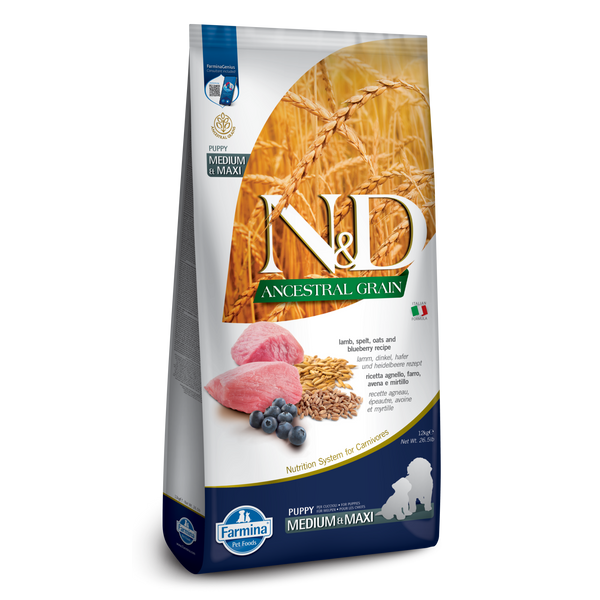Farmina N&D Ancestral Grain Lamb & Blueberry Medium & Maxi Puppy Dry D