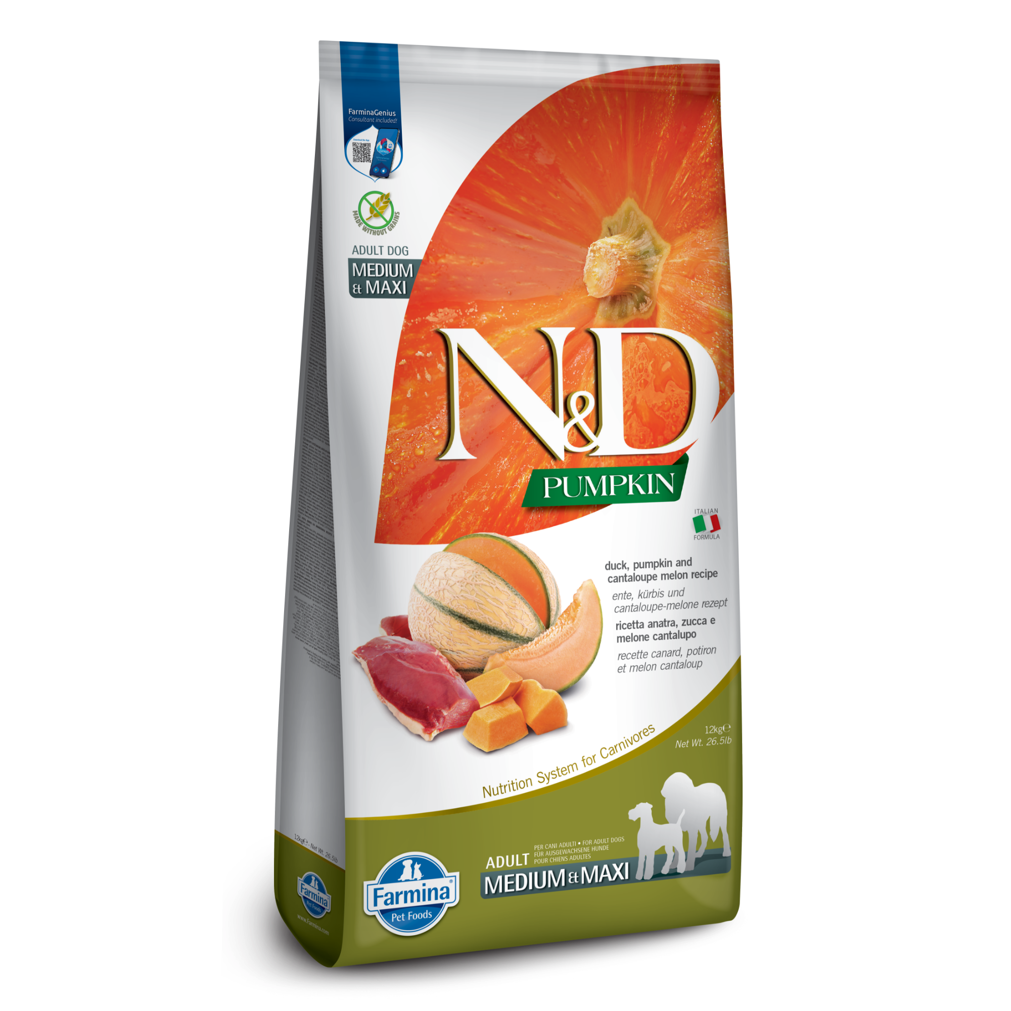 N&D Pumpkin Grain Free Duck Pumpkin & Cantaloupe is formulated to meet the nutritional levels established by the AAFCO Dog Food Nutrient Profiles for maintenance.