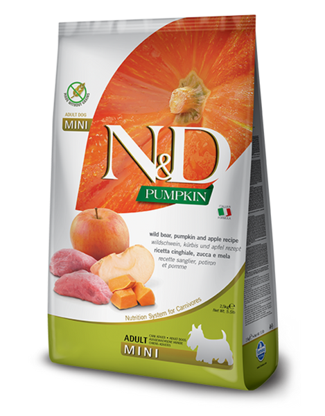 The carnivore nature of our four-legged family members is our guide in developing our all-natural scientifically researched food. Dogs in their natural state almost exclusively consume meat and don't require a diet containing a high level of carbohydrates. Pursuing this philosophy we developed the innovative line N&D Pumpkin, a Grain-Free food with a high percentage of animal ingredients (over 60%), pumpkin, and vegetables that have beneficial nutritional properties.