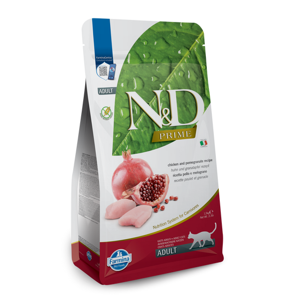 N&D Chicken and pomegranate recipe is formulated to meet the nutritional levels established by the AAFCO Cat Food Nutrient Profiles for maintenance.