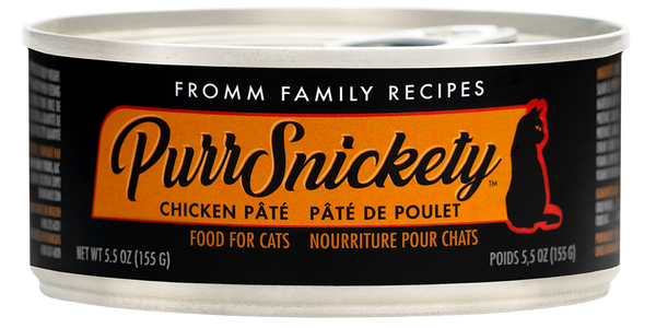 Finely minced chicken and rice cooked in chicken brothPurrSnickety® Chicken Pâté Food for Cats is formulated to meet the nutritional levels established by the AAFCO Cat Food Nutrient Profiles for all life stages.