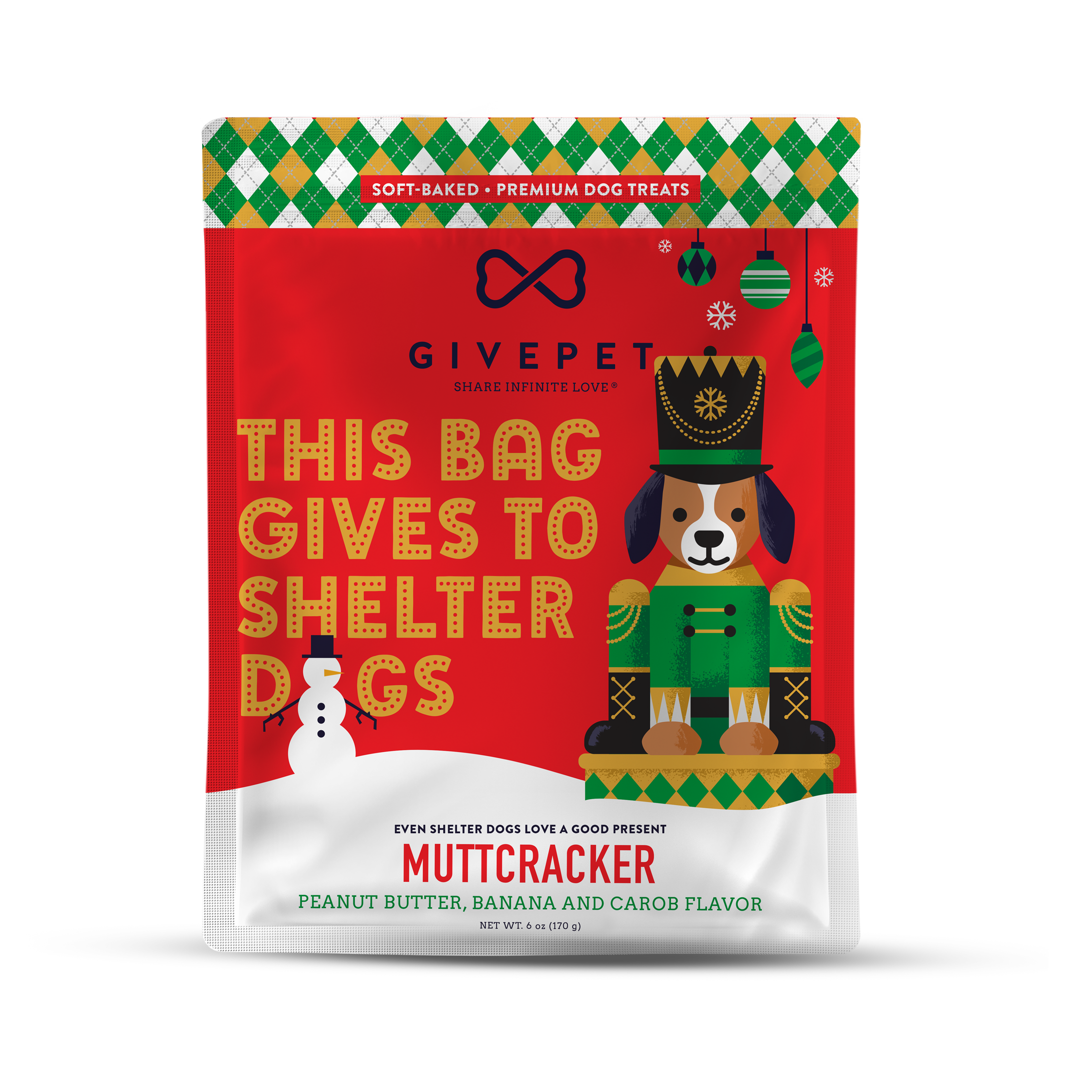 Available for a limited time only! 6oz bag of holiday-themed soft baked treats. Made with nutrient-rich whole foods and superfoods. Peanut butter, banana and carob flavor.