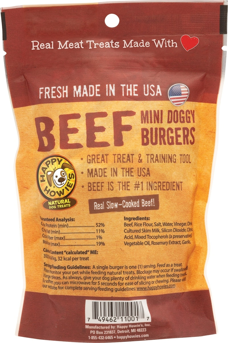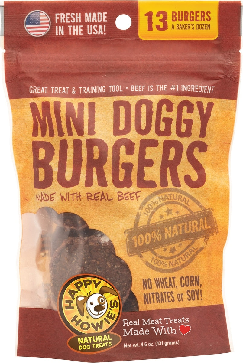 - Happy Howie’s Mini Doggy Burgers are a great anytime treat for your dog.