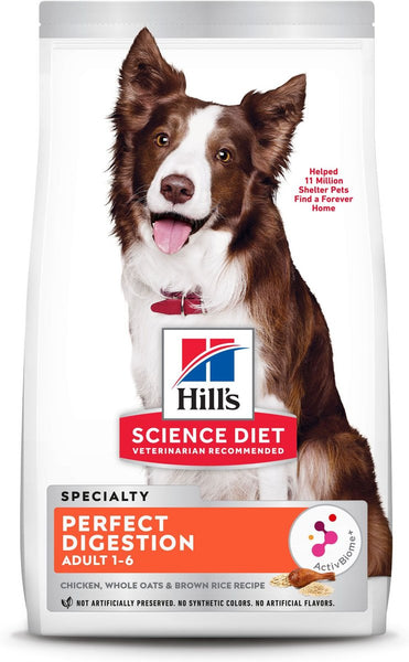 Providing your pup with the right nutrients to help balance her gut microbiome is important because it not only helps supports her digestive health, but her overall well-being, too. Hill’s Science Diet Adult Perfect Digestion Chicken, Brown Rice & Whole Oats Recipe Dry Dog Food is specially formulated with an ActivBiome+ Technology—an ingredient blend of prebiotics whole grain oats and pumpkin that helps your furry friend feel her best by supporting her unique gut microbiome for healthy digestion and balanced nutrition..
