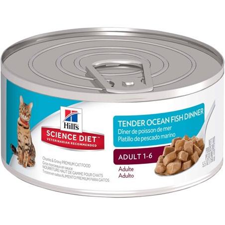Hill's Science Diet Adult Tender Ocean Fish Dinner Canned Cat Food, 5.5 Oz. is a perfect balance between the delicious taste of tender baked ocean fish chunks in succulent gravy that cats love and the precise nutrition they need.
