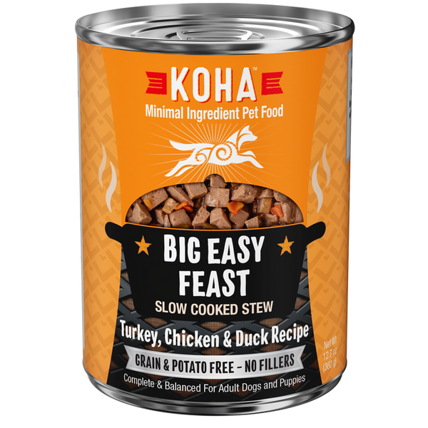 KOHA Big Easy Feast Slow Cooked Stew provides a nutritious high-quality protein combination that is grain, potato, and carrageenan free. Bring the New Orleans party right to your dog’s bowl with the delicious mix of turkey, chicken and duck. Feed as a complete and balanced meal or as a topper.