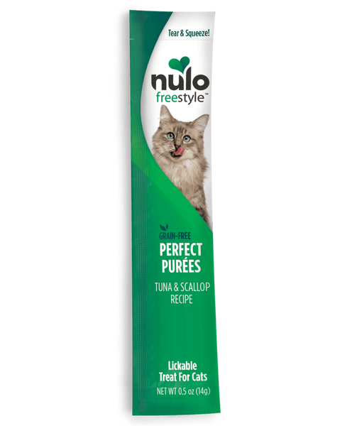 When nutrition meets love, the result is simply purrr-fect. Nulo FreeStyle's Tuna & Scallop Perfect Puree is a tasty way to show your tiny tiger how special they are to you while delivering a highly nutritious reward! Serve directly from the packet as a lickable treat or use as a topper to kibble or canned food! Nulo's Perfect Purees are a treat for pet parents to feed and for cats of all ages to eat!
