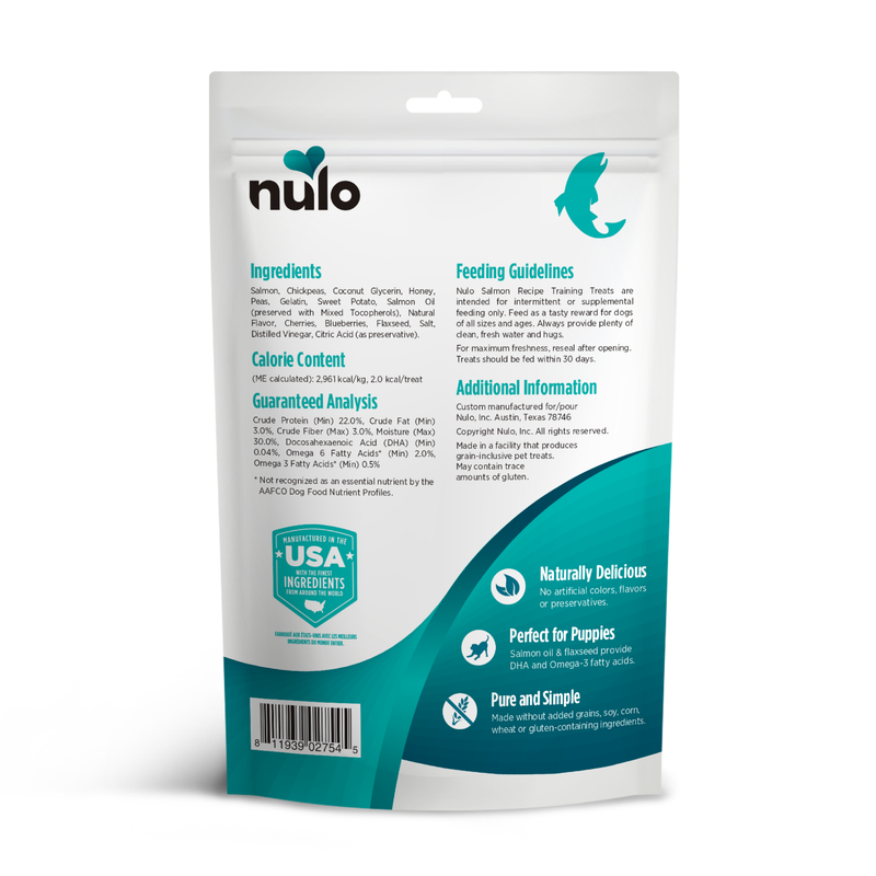 With no artificial preservatives, smoke flavors or artificial color, our Salmon Trainers give your pup wholesome nutrition in the form of high-value rewards for being a good dog! Our training treats are a low calorie reward, at only 2 kcal per treat, to support your pet's healthy weight and good behavior.