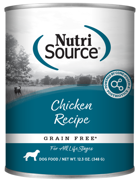 Offering a high quality, holistic recipe, NutriSource Grain Free Chicken Formula Canned Dog Food is an easy to digest pate your pup is sure to love! This recipe also has added prebiotics and highly digestible minerals for immune and growth support. Nutrisource recipes always include their Good 4 Life system with ingredients that work together to promote gut health often showing health improvements within the first feeding!