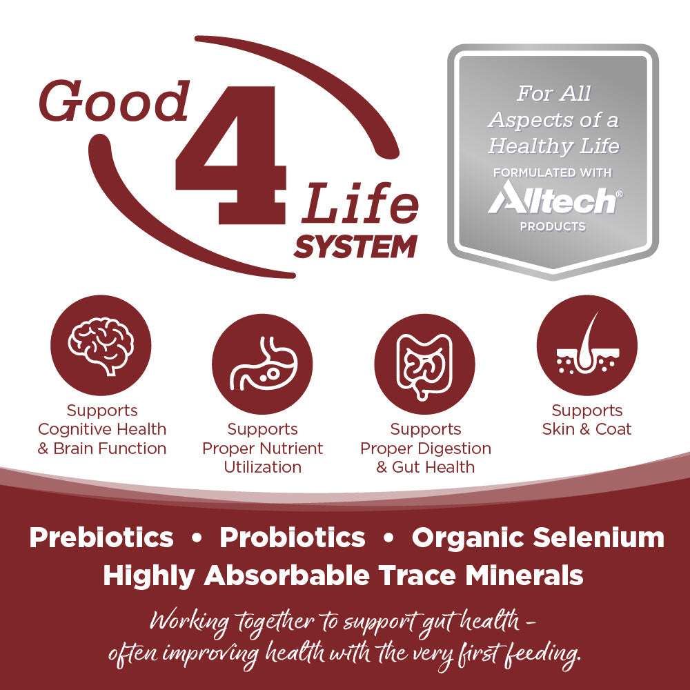 - Our proprietary supplement system, Good 4 Life, contains 4 key ingredients, including pre and probiotics that work together to support gut health and a healthy immune system