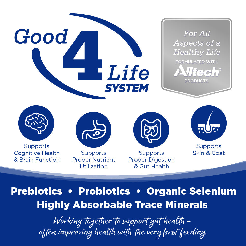 - Our proprietary supplement system, Good 4 Life, contains 4 key ingredients, including pre and probiotics that work together to support gut health and a healthy immune system