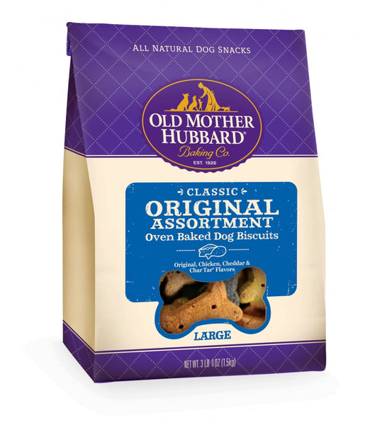 Old Mother Hubbard® classic Original Assortment bone-shaped biscuits include Original, Chicken, Cheddar & Char Tar® flavors.