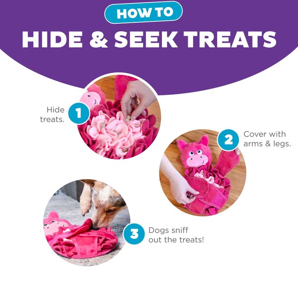 - This toy combines a snuffle mat and a plush dog toy for the ultimate interactive puzzle experience.