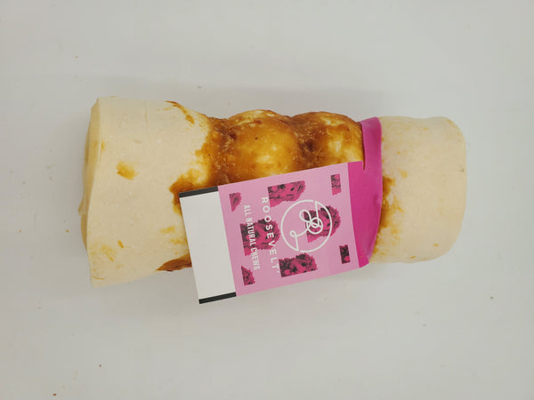 Roosevelt Beef Cheek Rolls are a great unprocessed alternative to traditional rawhide bones and rolls. Less dense than knotted rawhide bones, beef cheeks are made from a single piece of animal skin – making them more digestible (aka easier on your pup’s tummy). Naturally flavored with chicken for an extra tasty chew.
