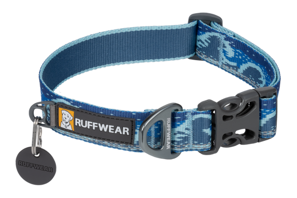 The Crag™ Collar is packed full of Ruffwear's essential collar features: an aluminum V-ring, separate ID tag attachment point, and a silicone tag silencer.