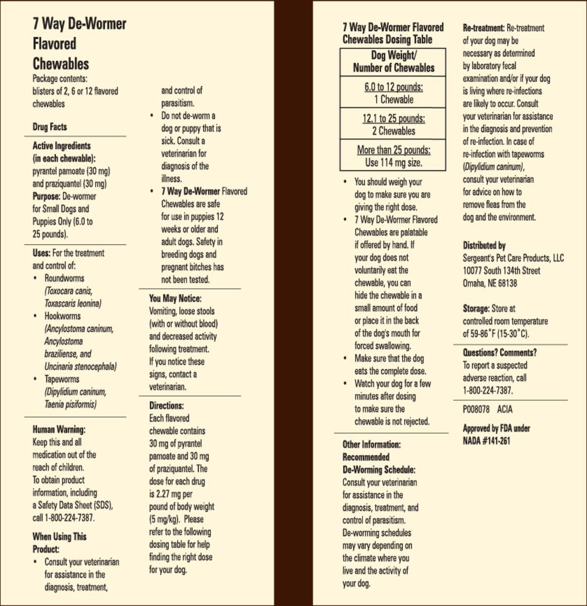 - Treats seven strains of worms, including tapeworms, roundworms and hookworms.