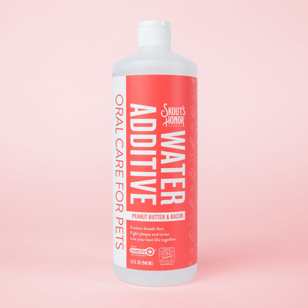 Skout's Honor's Water Additive is proven to freshen breath fast, while helping to reduce plaque and tartar at the source. This pet-safe solution makes it easy to create a better oral care routine for your pet - no brushing required! This product is intended for dogs of all sizes and breeds who love peanut butter, or bacon. But mostly for dogs who love the combo of peanut butter and bacon so much, that their daily oral care routine will become a drool-worthy event. Skout's Paw Pledge: Together we provide a day's worth of food to an animal in need, with every product sold (Buy a Bottle, Feed an Animal).
