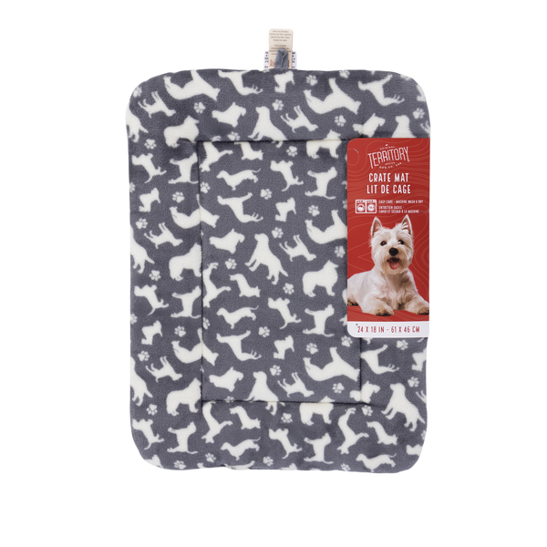 Treat your pup's paws to a cozy nap spot with this snuggly Territory Crate Mat. Get the pawfect size for your dog's crate with our variety of sizes. In playful gray with a cute canines and pawprints design, this mat is machine-washable and dryer-friendly for effortless maintenance.