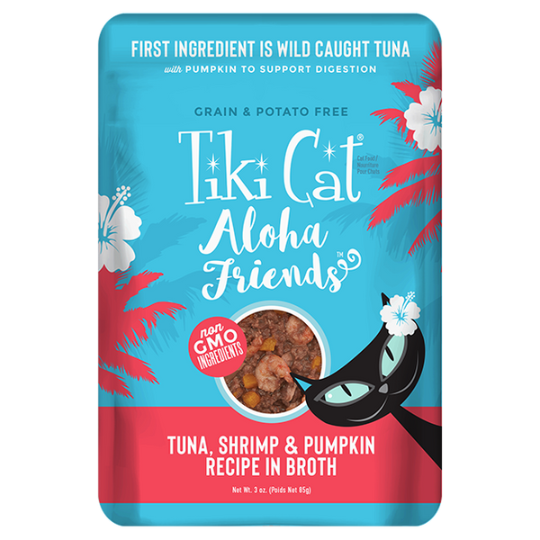 Made with whole fish & pumpkin, Tiki Cat® Aloha Friends™brand cat food provides a complete and balanced, and highly digestible diet for cats.