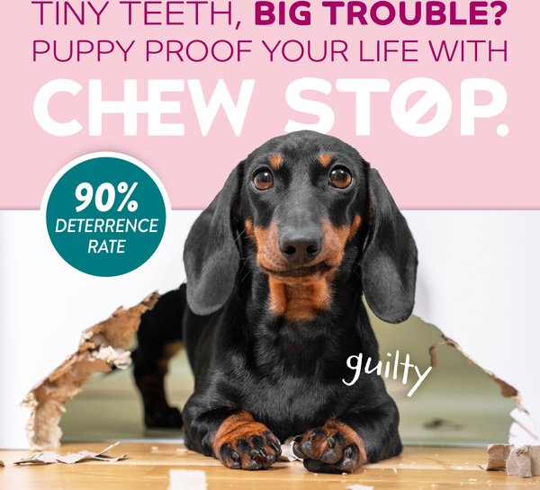 - No chew puppy spray stops 90% of unwanted behaviors.
