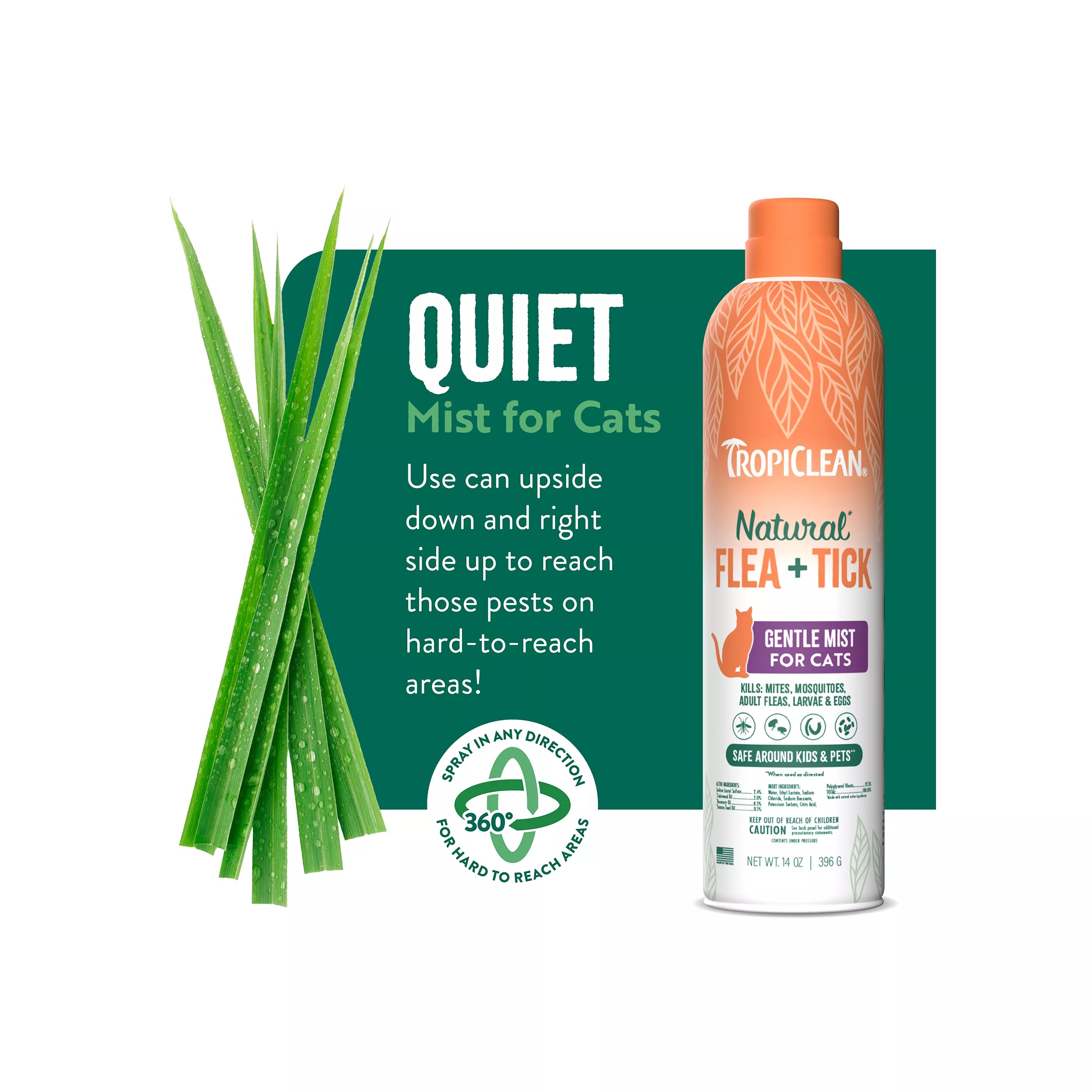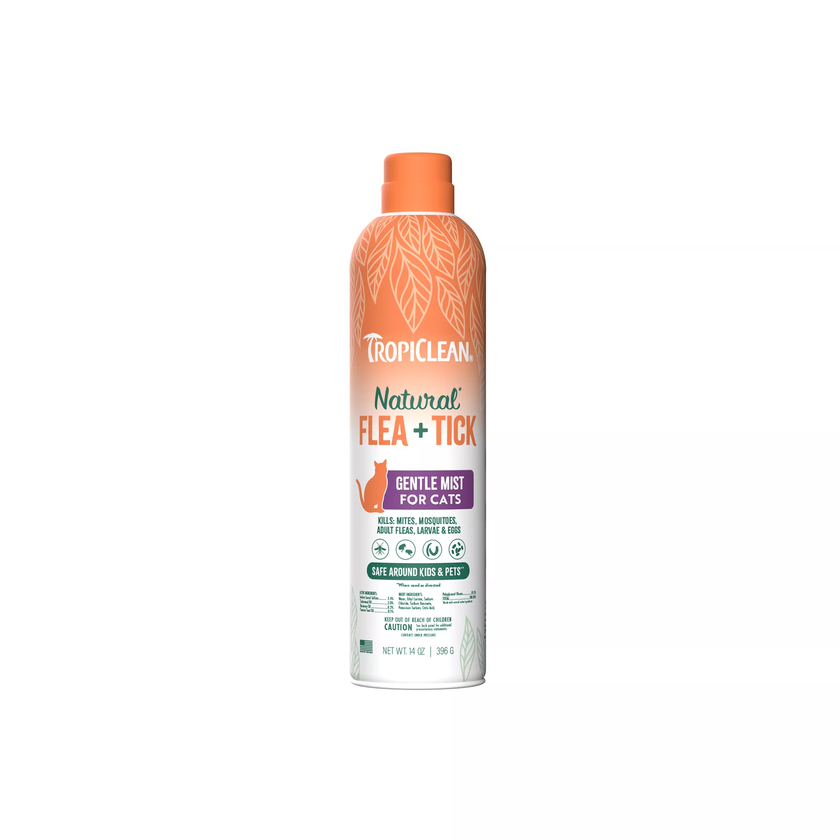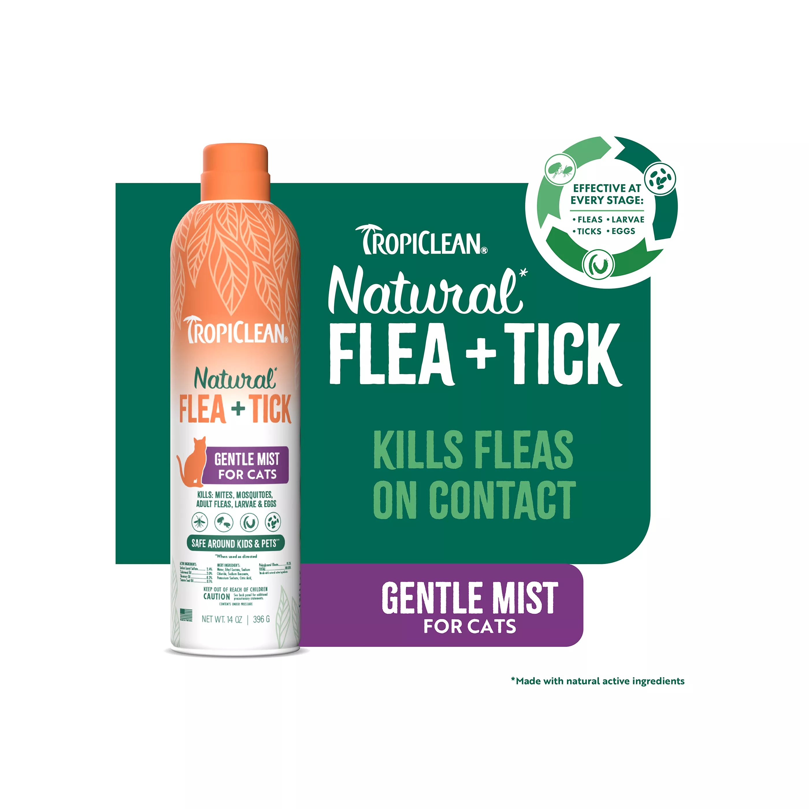 TropiClean Natural' Flea + Tick Gentle Mist for Cats kills fleas, mosquitoes, and mites by contact and repels ticks. This natural essential oil blend has been scientifically crafted for cats with powerful pest fighting ingredients.