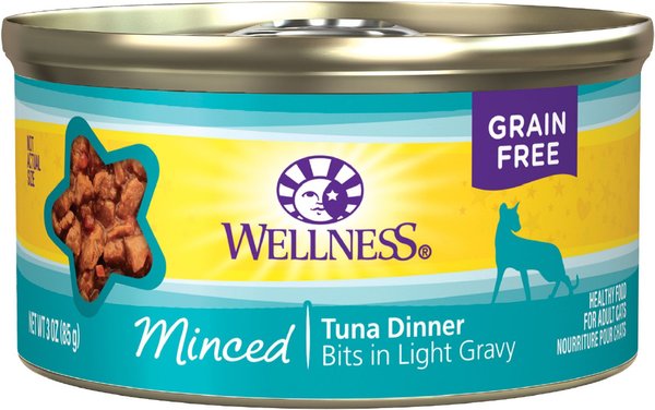 Wellness Grain-free Natural Minced Tuna Recipe Wet Canned Cat Food is made of tasty Bits in a Light Gravy which include natural, wholesome ingredients with no added artificial colors, flavors or preservatives. This dinner is a great way to add some variety to your cat’s diet, in addition to providing an additional source of water for healthy hydration!