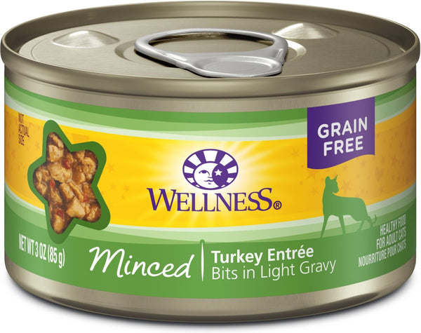 Wellness Grain-free Natural Minced Turkey Recipe Wet Canned Cat Food is made of tasty Bits in a Light Gravy which include natural, wholesome ingredients with no added artificial colors, flavors or preservatives. This dinner is a great way to add some variety to your cat’s diet, in addition to providing an additional source of water for healthy hydration!