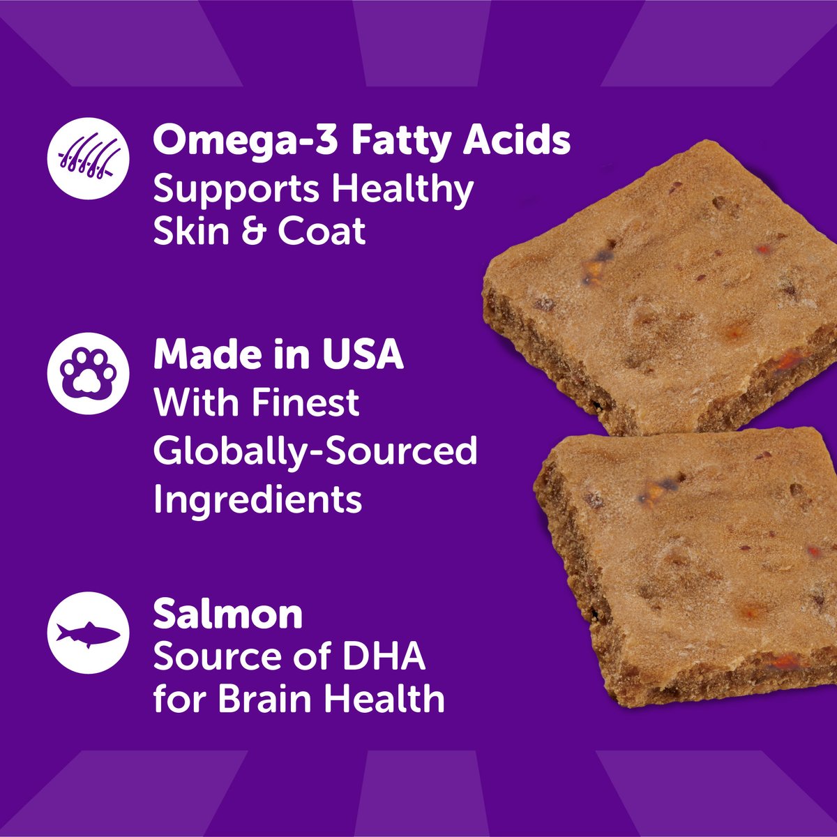 Treat your pup to a hearty and delicious reward with Wellness Rewarding Life Chicken & Lamb Grain-Free Soft & Chewy Dog Treats. These soft and chewy treats are crafted with a nutritious mix of chicken, lamb, carrots, apples, and superfoods like blueberries and sweet potatoes. The beneficial bites are perfect for training, treating, or just plain spoiling. Plus, they’re made without grains, by-products, corn, soy, gluten, artificial flavors, or colors. Rewarding Life treats are great for pups with certain food sensitivities. Proudly made in the USA with globally sourced ingredients.