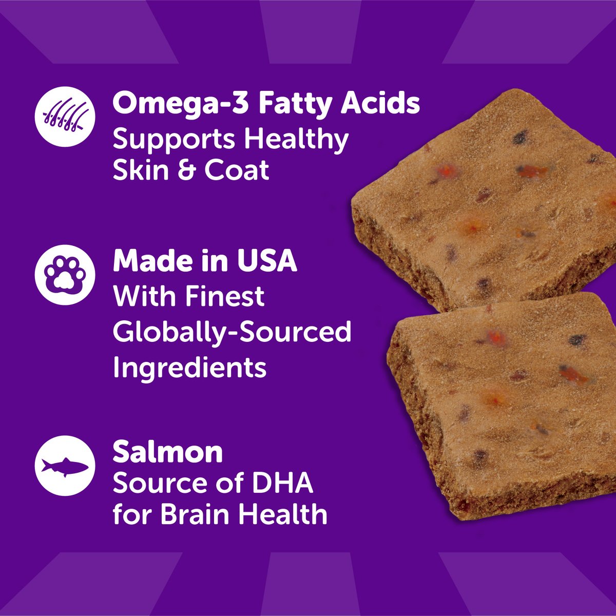 Treat your pup to a hearty and delicious reward with Wellness Rewarding Life Chicken & Venison Grain-Free Soft & Chewy Dog Treats. These soft and chewy treats are crafted with a nutritious mix of chicken, lamb, carrots, apples, and superfoods like blueberries and sweet potatoes. The beneficial bites are perfect for training, treating, or just plain spoiling. Plus, they’re made without grains, by-products, corn, soy, gluten, artificial flavors, or colors. Rewarding Life treats are great for pups with certain food sensitivities. Proudly made in the USA with globally sourced ingredients.