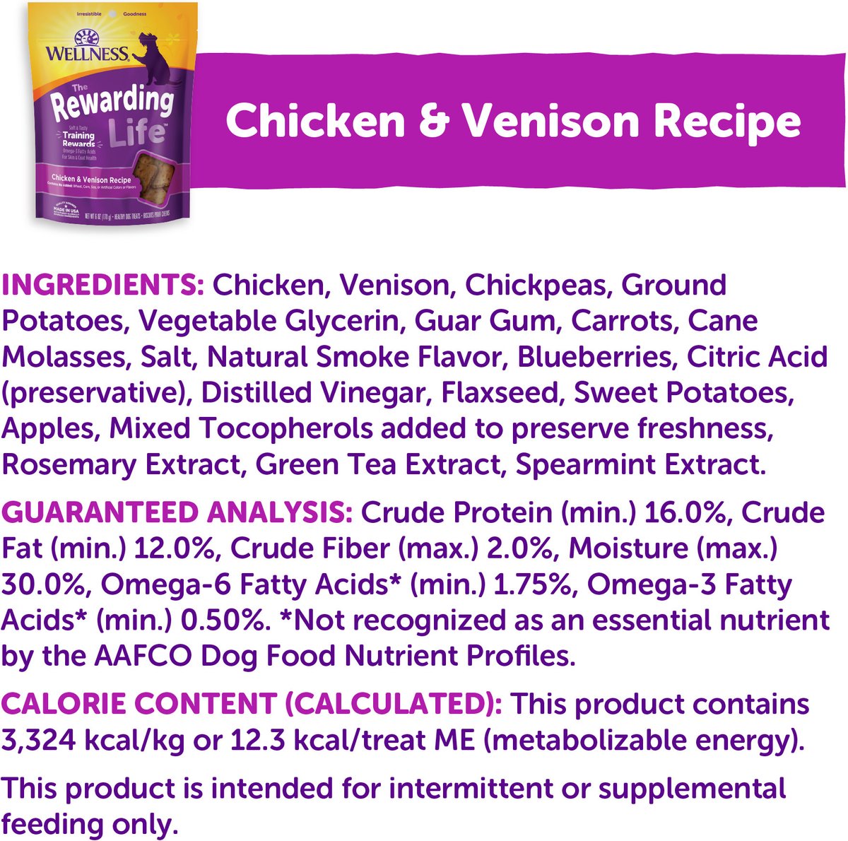 Wellness Rewarding Life Dog Treats are intended for intermittent or supplemental feeding only.