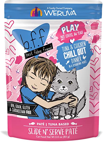 It’s time to PLAY… for dinner!? That’s right, new B.F.F. Paté Lovers Aw Yeah! recipes are what your best feline friend has been asking for. Grain, gluten, carrageenan, and starch free means that these playful patés are sure to please even the pickiest of pals. Available in three protein options; chicken only, fish only, and mixed protein recipes.
