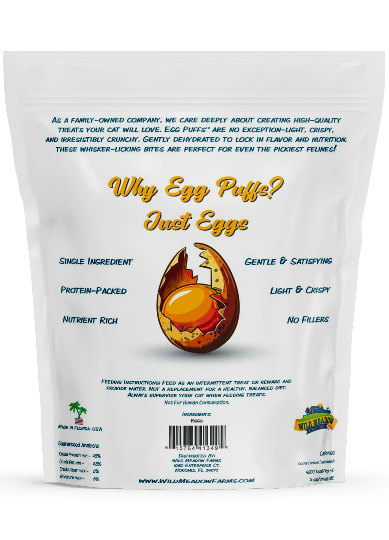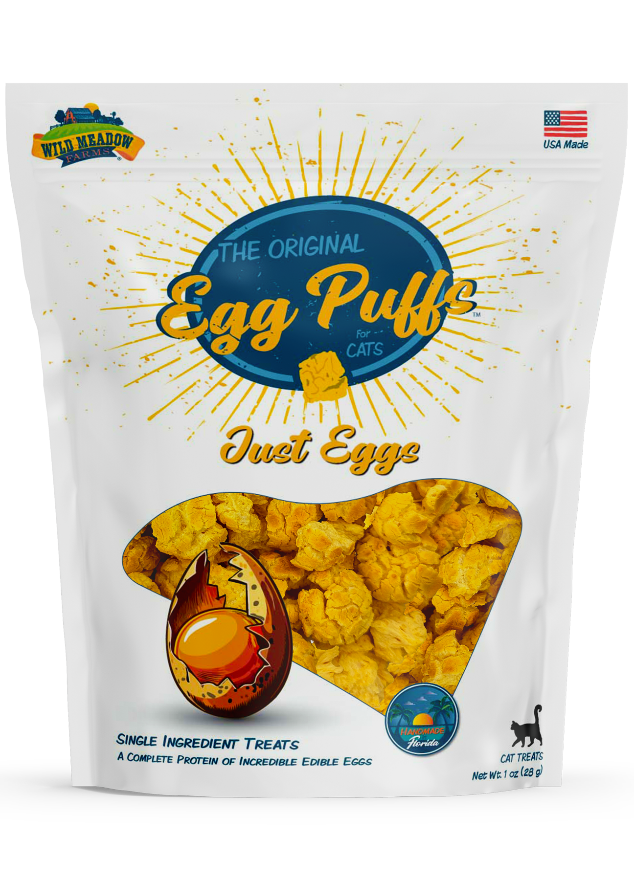 Using our patent pending process, we bring you a one-of-a-kind treat made for cats. We gently dehydrate eggs to create a light, crispy, irresistible snack. Packed with rich protein, these airy bites satisfy feline cravings with a crunch they love. With a variety of flavors, each recipe offers a purposeful focus for your cats' well-being.