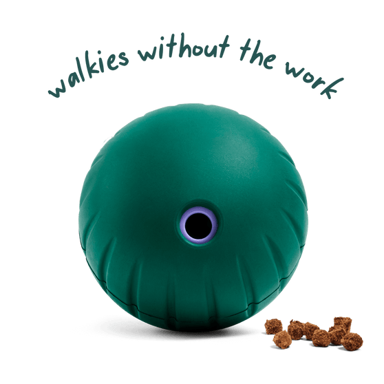 Rainy day? Back-to-back meetings? The Walkabout lets your dog take themselves for a walk. This 2-in-1 slow feeder and puzzle toy rolls and wobbles unpredictably, turning mealtime into movement—no leash required. Fill it with kibble for an indoor workout that delivers 5× more activity than standard slow feeders. Add Woof Puzzle Treats for a brain boost, as your pup chases it down like prey to earn each bite. The adjustable dial fits all kinds of kibble and treats and lets you change the challenge level for even more enrichment. Made from tooth-friendly, floor-quiet rubber, it’s dishwasher-safe, travel-ready, and built to keep pups moving—so you can get your to–do list done.