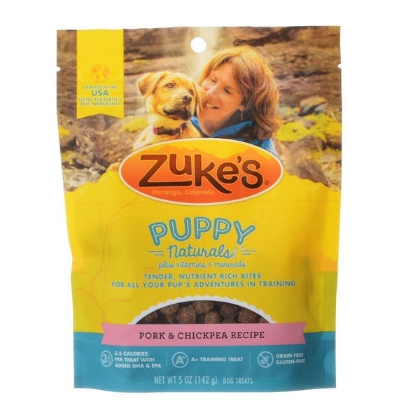 To your puppy, every day is a new adventure. There's so much to learn: Come. Sit. Stay. And, perhaps most important, always do your business outside. Treat your way to a better-behaved puppy with grain-free Zuke's Puppy Naturals. They're an ideal, puppy-sized reward for a job well done and a perfect complement to your pup's playful spirit and developing taste buds. Specially crafted in the USA using the Earth's best ingredients, they're made with protein-rich salmon, pork or lamb, plus added DHA and EPA to help support puppy's healthy brain development. Mighty impressive at just 3.5 calories per treat.