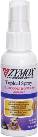 Promotes healthy skin and provides relief from itching caused by inflammation, dermatitis, and other minor skin irritations. ZYMOX® Topical Spray features the patented LP3 Enzyme System which blends a concentrated combination of protein and enzymes plus skin soothing aloe vera and 0.5% hydrocortisone for itch relief. The Spray is ideal for areas away from the face.